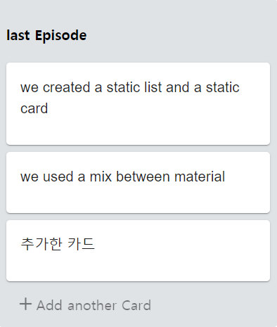 오늘 만든건 저번시간과 대충 비슷한 맥락의 리스트보드 안의 카드 추가였다.